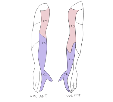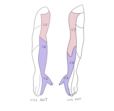 D projetée à un métamère cutané, soit une atteinte neuro centrale ou radiculaire avec mono, poly radiculalgie déficitaire