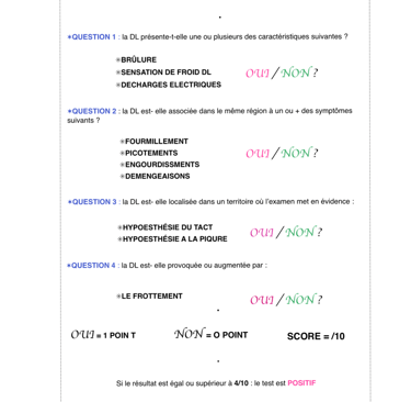 Malgré l’absence de signe évident d’une lésion tissulaire réelle provoquant l’activation des nociceptieur périphérique, ni de signe ou de maladie ou de lésion du système somato-senso à l’origine de la DL
