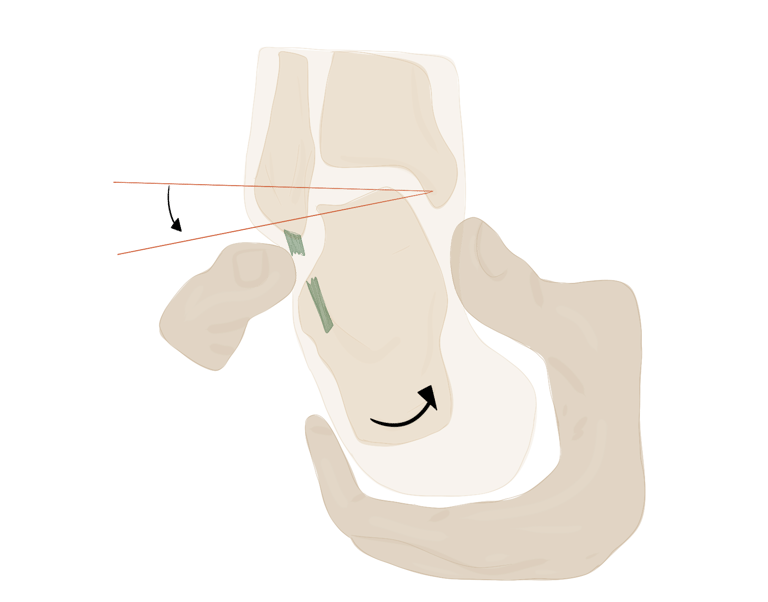 Attention il s’agit d’un mouvement dynamique : à force de répéter le mvt, on observe bcp plus de varus et donc de laxité de la cheville touchée.
