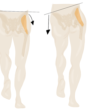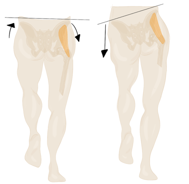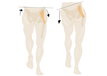 Moyen fessier très exposé → constamment sollicité pour stabilisation, bassin et déambulation