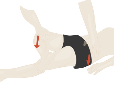 Douleur augmente : à marche, course, escaliers, croisement jambes, position allongée dessus (écrasement)